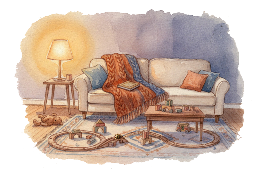 With steady evening rhythms — soft light, predictable steps, slow breathing, a soothing story — most children settle more easily and fall asleep with less resistance.